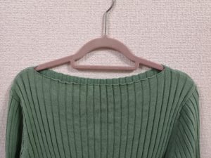 もう一点はシンプルなスラッシュドネックのリブニットです。