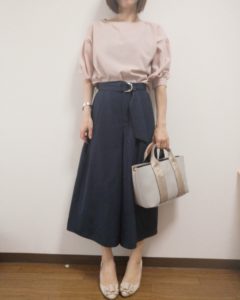 以前買取りしたピンクベージュのとろみ系素材のブラウスと合わせてみました。