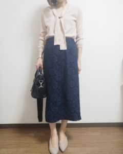 長めのタイトスカートを合わせてすっきりしたスカートスタイルにしてみました。