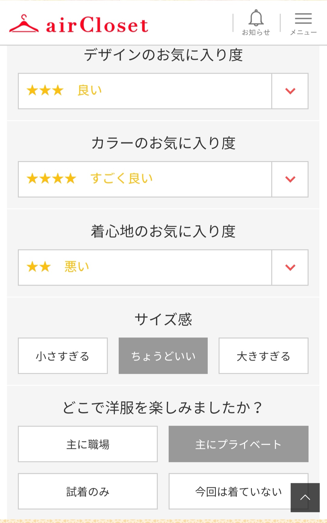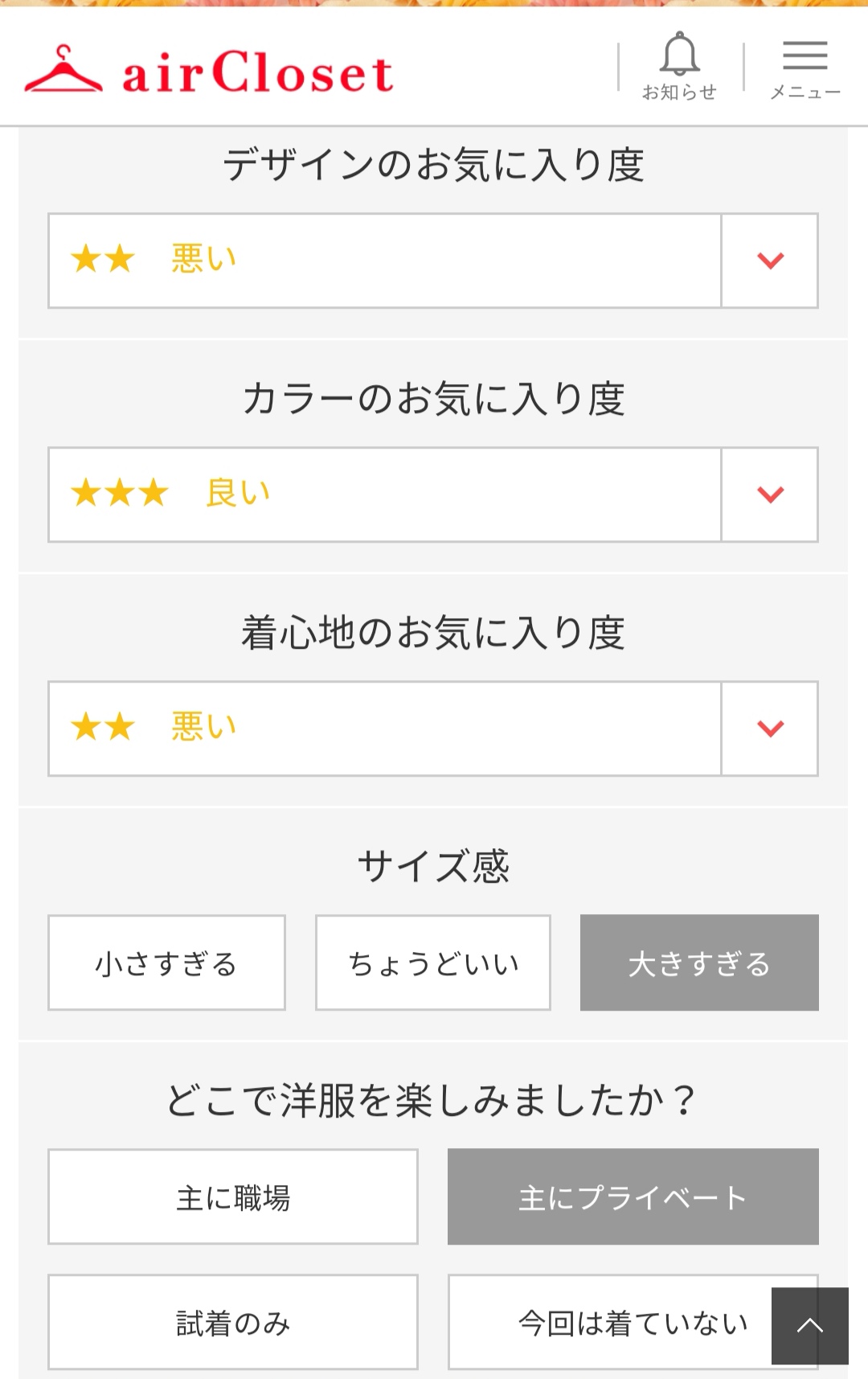 着心地のお気に入り度を悪い★★を選んでしまいました。。。