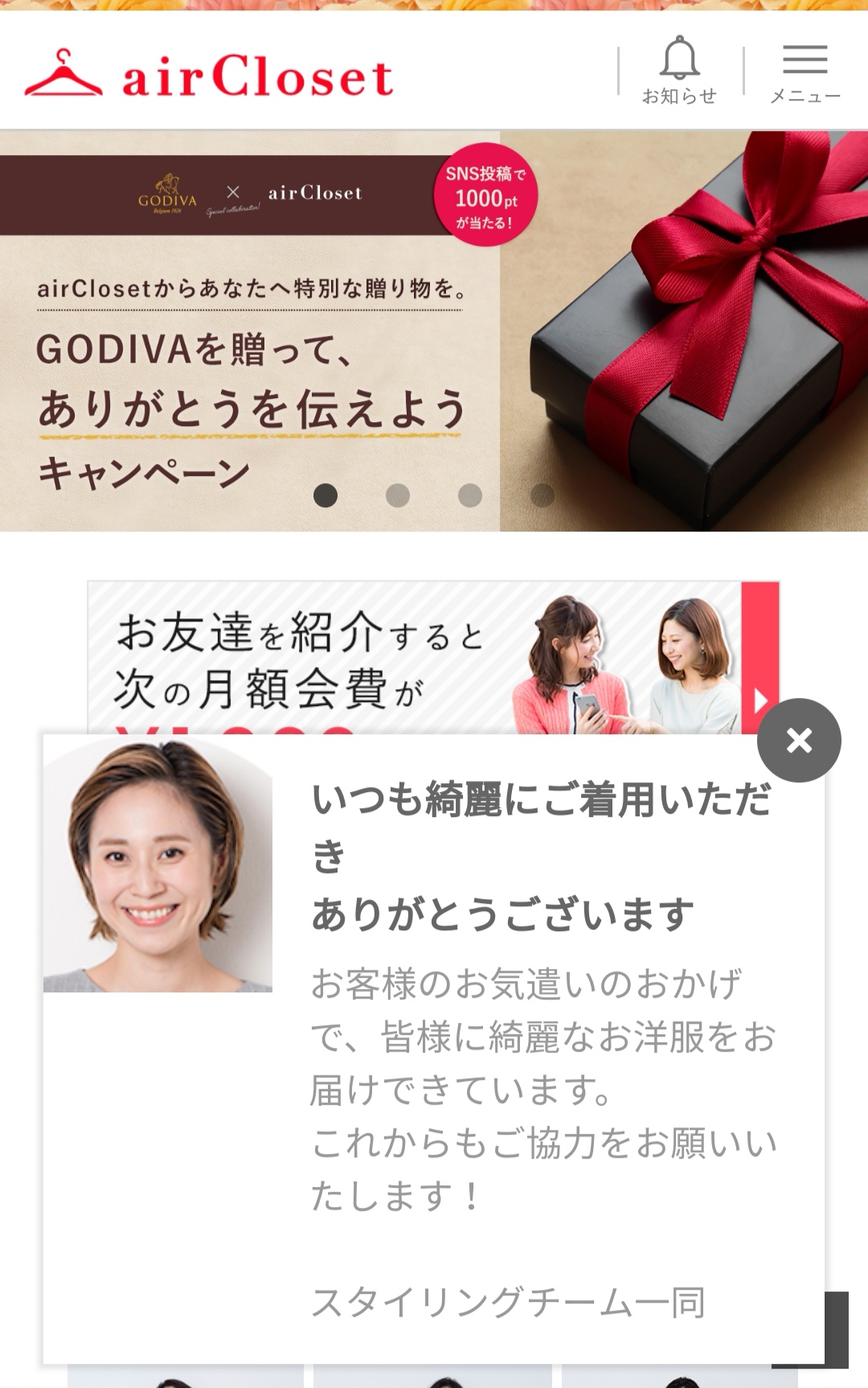 HPを開くとスタイリストさんからのメッセージが出てきました。